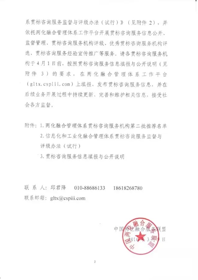 20158月,北京大陸航星質量認證中心股份有限公司(HXQC)向國家工業(yè)化和信息化部提交兩化融合管理體系貫標咨詢機構的申請,經過半年審核獲得批準。