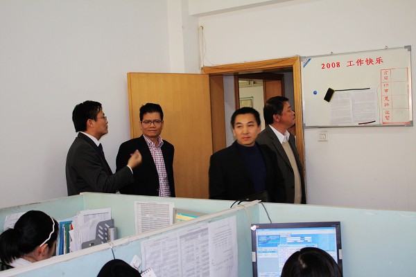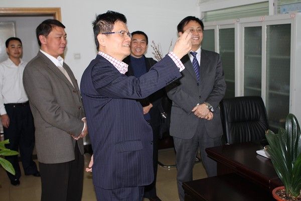 黃博愛董事長、江明首席執(zhí)行長在陸益勤總裁和總裁助理孫敏的陪同下,饒有興致的參觀了各部門的工作。